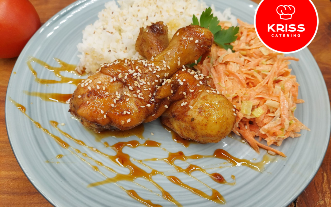 Podudzie z kurczaka w sosie teriyaki podawane z marynowanym ryżem