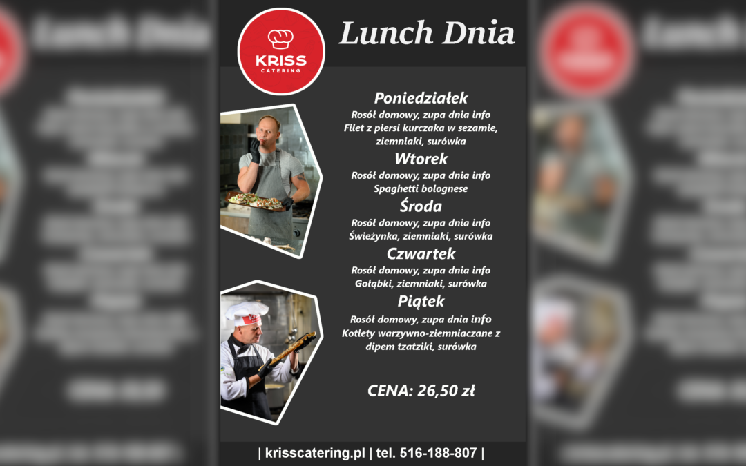 Zapraszamy na Lunch dnia na nowy tydzień! Oto propozycje, które przygotował dla Was Kriss Catering.