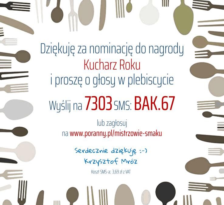 Aby zagłosować na mnie w konkursie, proszę odwiedzić stronę https://poranny.pl/krzysztof-mroz/pk/5299759/pg/4185 i podjąć kilka prostych kroków. Wasze głosy są dla mnie niezastąpioną motywacją i dowodem, że moja praca ma znaczenie dla Was, drodzy kulinarni pasjonaci.