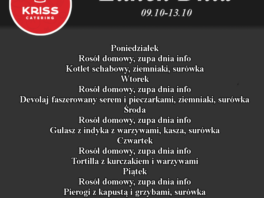 Zapraszamy na Lunch dnia na nowy tydzień! Oto propozycje, które przygotował dla Was Kriss Catering.
